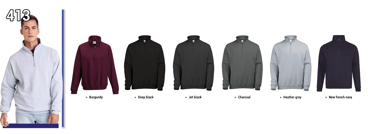 413 - SWEAT 1/4 ZIPPE // Unisexe Grammage : 280 grs - ComPosition : 80 % coton 20 % polyester - Coton doux - Awdis