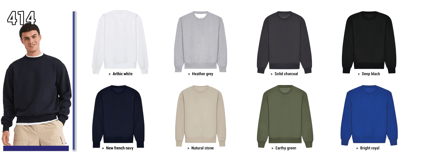 414 - SWEAT EPAIS COL ROND // Unisexe Grammage : 440 grs - ComPosition : 80 % coton 20 % polyester - Coton doux - Awdis