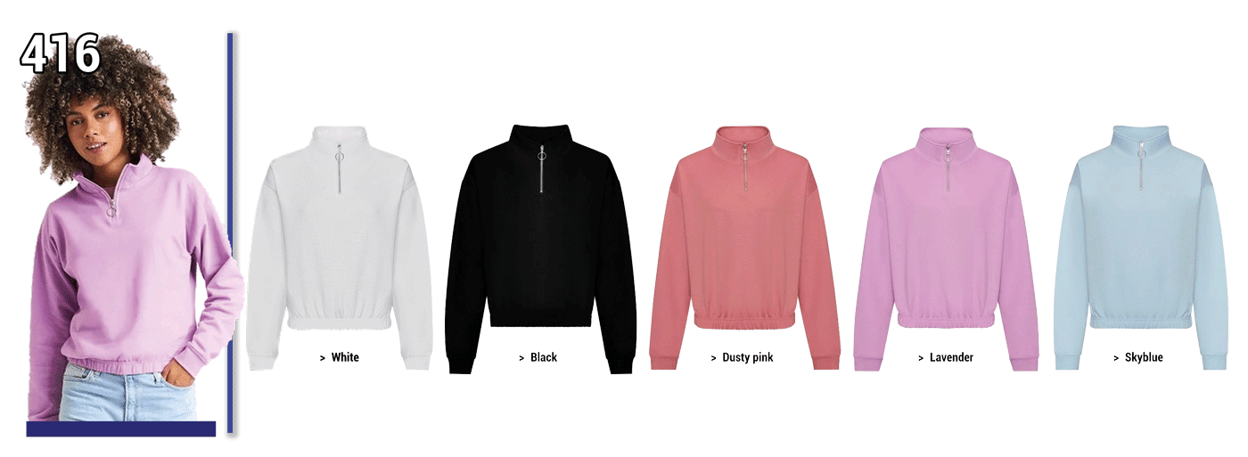 416 - SWEAT COURT 1/4 ZIP // Femme Grammage : 280 grs - ComPosition : 80 % coton 20 % polyester - Coton doux - Awdis